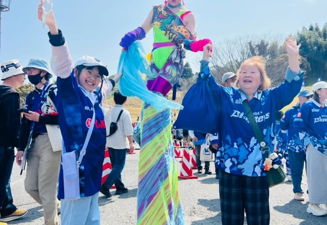 ネオンカラーのカラフルな足長キャラクター 【パピコ・グランデ】が、ラグビーリーグの試合会場に登場! 静岡ブルーレヴズ 対 コベルコ神戸スティーラーズ のキックオフ前に、ステー…