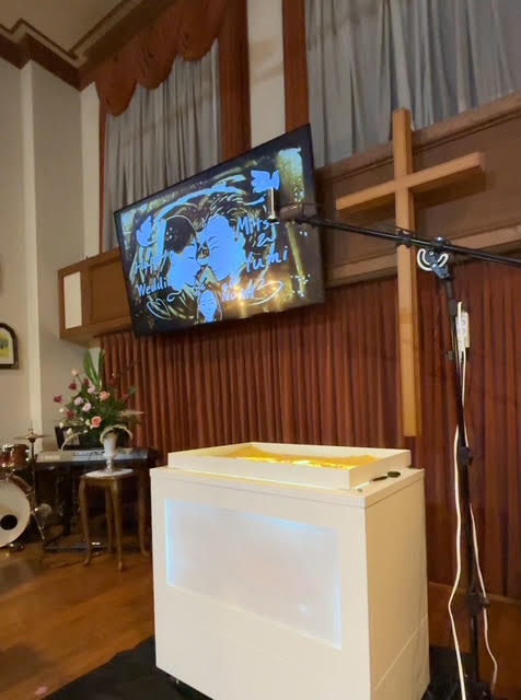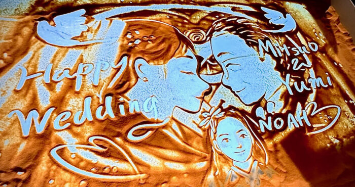 神奈川県のチャペルにて結婚20周年のお祝いが開かれそこにサンドアートのkoheiを派遣しました。