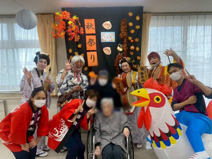 西尾市にある高齢者施設にチンドンの海泉社を派遣しました。