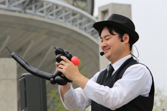 風船をひねっている姿は、遠くからでもイベントをやっていることを見せることができ