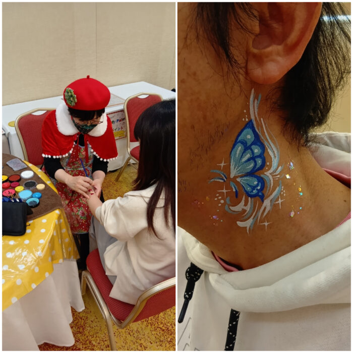 一気にパーティー感を演出するボディペイントは、水で簡単にオフすることができるので