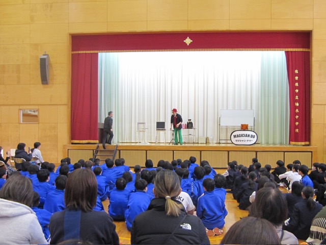 長崎県の中学校の芸術鑑賞会でマジシャンドゥーを派遣しました。