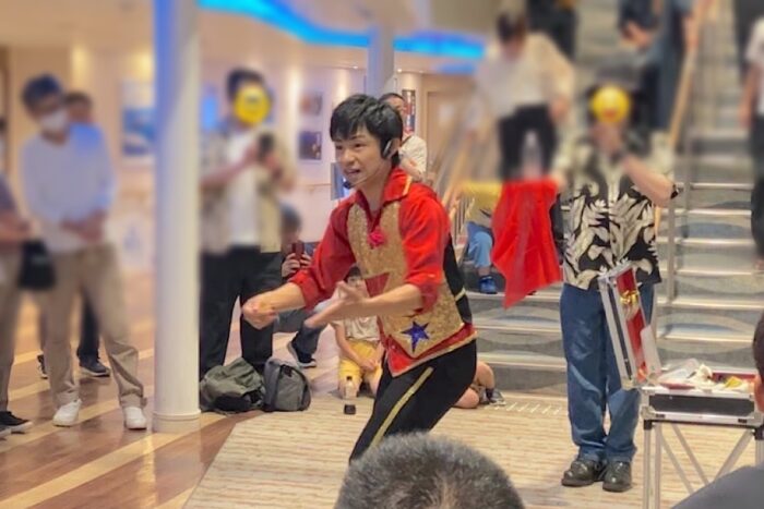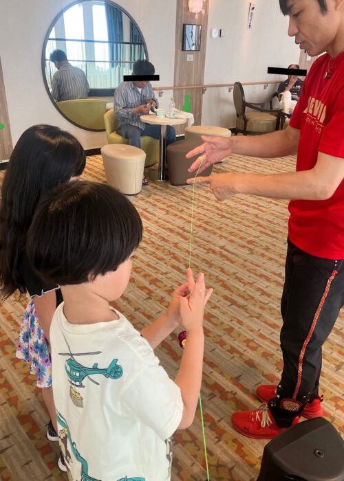 夕方便・船内でのイベント、ヨーヨー世界チャンピオン Yo-Yo Entertainer TOMMYを派遣しました。