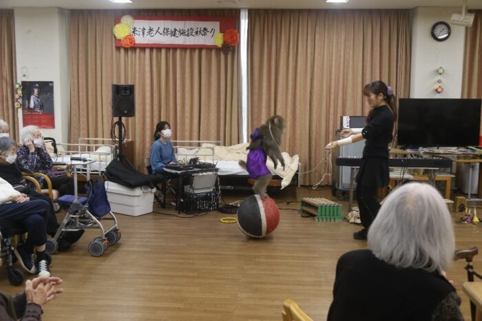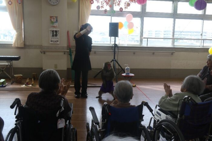 西尾市の高齢者施設にて行われた秋のイベントにてまい先生と掛川金太郎君を派遣しました。
