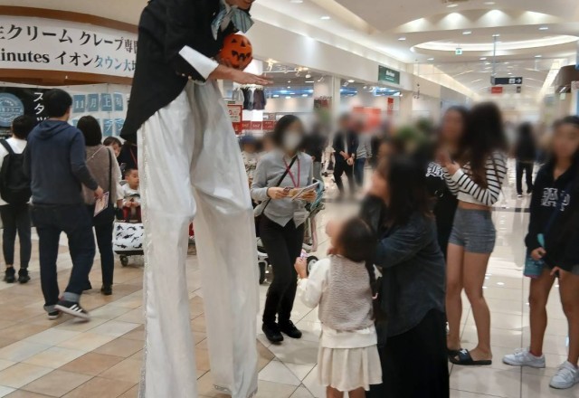 イオンタウン大垣のハロウィンイベントで足長のケンタを派遣しました。  ハロウィンのお菓子をご来店いただいたお子様にお配りして喜んで…