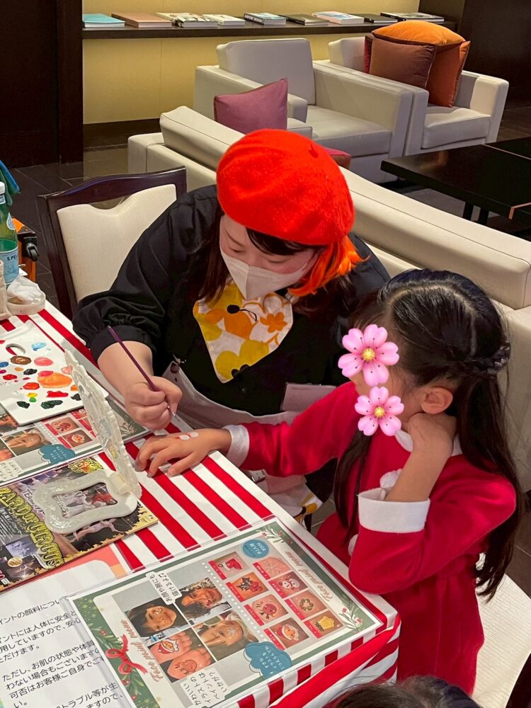 ブース形式で、クリスマスや冬のデザインでのボディペイントは、お子さんに人気のコンテンツです。