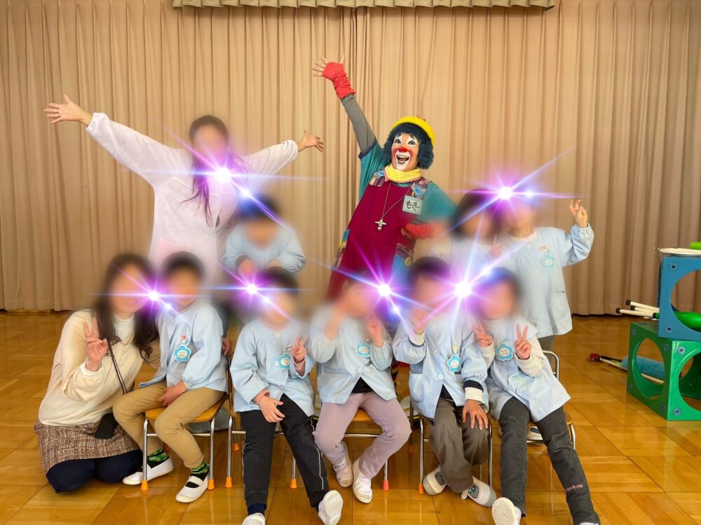 レポート HOME > レポート > 幼保 > クラウンショー 園公演(名古屋市) レポート ジャンルを選ぶ。イベント幼保学校・舞台公演小福山制作バルーンフェイス&ボディペイントマジックパーティ・宴席 TEAMパフォーマンスラボの活動報告です。 幼保 2026.01.09 クラウンショー 園公演(名古屋市) 名古屋市内の幼稚園にて、クラウンのもっきーによるパフォーマンスを行いました。 園児さんはもちろん、未就園のお子さんとママ・パパも一緒に参加し、 会場は終始なごやかな空気に包まれました。 もっきーの掛け声に合わせて手をたたいたり声を出したり、 先生ともっきーのチャンバラ対決では、たくさんの笑いと拍手が広がりました。 クラスごとの撮影会も、笑顔いっぱいの時間となりました。 前へ < ブログ一覧に戻る 幼保2026.01.09 クラウンショー 園公演(名古屋市) 名古屋市内の幼稚園にて、クラウンのもっきーによるパフォーマンスを行いました。 園児さんはもち… 詳しくはこちら 幼保2025.12.19 クラウンショー 園公演 (名古屋市) 名古屋市の幼稚園でクラウンララちゃんのショーが行われました。 終了後にプレゼントを沢山もらった… 詳しくはこちら 幼保2025.12.19 マジック&イリュージョンショー 園公演 (名古屋市) 名古屋市の保育園でマジック&イリュージョンショー開催! よしよし&まみが軽快なトークに乗せて不… 詳しくはこちら 幼保2025.12.18 クラウンショー 園公演 (名古屋市) 名古屋市の幼稚園で行われたララちゃんのクランショー。 ジャグリングやバルーンなどのいろんな演目… 詳しくはこちら