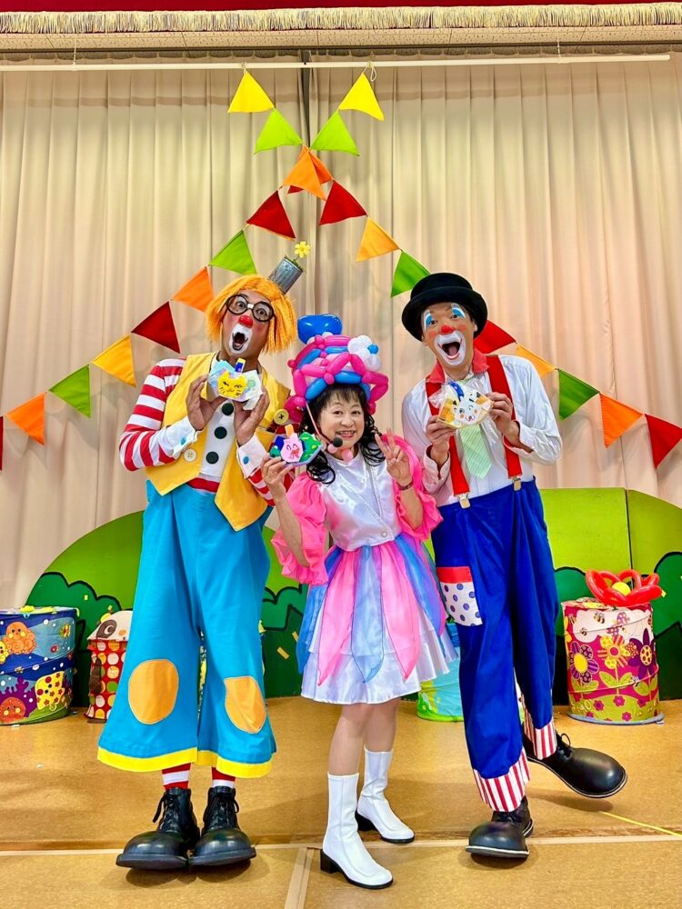 レポート HOME > レポート > 幼保 > クラウンショー&バルーンショー 園公演 (幸田町) レポート ジャンルを選ぶ。イベント幼保学校・舞台公演小福山制作バルーンフェイス&ボディペイントマジックパーティ・宴席 TEAMパフォーマンスラボの活動報告です。 幼保 2025.11.11 クラウンショー&バルーンショー 園公演 (幸田町) 幸田町にある幼稚園にバルーンパフォーマーのなっきーとクラウンのビンゴ&ココロが登場! ココロのジャグリングを見て「おぉ~!」と歓声を上げる子どもたち。 ビンゴとも一緒に沢山遊びました。園内ホールには沢山の笑い声。 そしてなっきーのバルーンショーはみんな興味深々。 一本のバルーンがあっという間にいろんな形に大変身。 変身させたバルーンは園へのプレゼント♪ 休憩なしの60分でしたが最後まで集中して楽しんでくれました。 前へ < ブログ一覧に戻る > 次へ 幼保2025.11.21 クラウンショー 園公演 (名古屋) 名古屋市の幼稚園でクラウンヒロポンによるクラウンショーが行われました。 ヒロポンが持っている透… 詳しくはこちら 幼保2025.11.17 クラウンショー 園公演 (名古屋市) 名古屋市の園でもっきーのクラウンショー。 もっきーが会場に姿を現すと「あー!」と言って笑いだす… 詳しくはこちら 幼保2025.11.14 ハッピースマイルコンサート 園公演 (幸田町) 幸田町の保育園でハッピースマイルコンサートを行いました。 この日は「クラウンショー多め」という… 詳しくはこちら 幼保2025.11.12 クラウンサーカス (名古屋) 愛知県名古屋市で行われた保育園児の集いにクラウンサーカスが登場しました。 メンバーは、クラウン… 詳しくはこちら