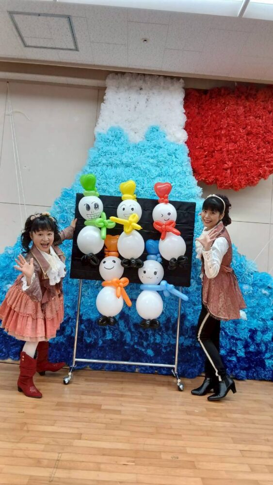 レポート HOME > レポート > イベント > ハッピースマイルコンサート (岐阜県) レポート ジャンルを選ぶ。イベント幼保学校・舞台公演小福山制作バルーンフェイス&ボディペイントマジックパーティ・宴席 TEAMパフォーマンスラボの活動報告です。 イベント 2026.01.18 ハッピースマイルコンサート (岐阜県) なっきー&えみちゃんが行ったのは岐阜県の福祉施設様。 美空ひばりさんの歌とか、山口百恵さんの歌とか今まで歌ったことがないジャンルのリクエストが 沢山あって沢山練習をしました。 中でも高校三年生はなっきーがとても苦労して稽古していましたよ。 そのかいあって、皆様に本当に喜んでいただけました。 職員さんや保護者の方にお手伝いいただいて可愛い雪だるまも作りました。 言葉が出ない方たちが大半だったけど「楽しい!」って思ってもらえてるのが顔の表情でわかる。 とても幸せな2人でした。 前へ < ブログ一覧に戻る > 次へ イベント2026.01.22 和芸 よしよし&暁あんこ (香川県) 香川県の商業施設でよしよし&暁あんこのw和芸ショーが行われました。 軽快な言葉とともに日本の伝… 詳しくはこちら イベント2026.01.18 大道芸パフォーマンス はなまる (静岡) 静岡県長泉町のショッピングセンターに パフォーマーのはなまるが登場しました。 テンポの良い… 詳しくはこちら イベント2026.01.18 ハッピースマイルコンサート (岐阜県) なっきー&えみちゃんが行ったのは岐阜県の福祉施設様。 美空ひばりさんの歌とか、山口百恵さんの歌… 詳しくはこちら イベント2026.01.18 クラウンショー ヒロポン (碧南) 碧南のJAあいちで行われたイベントにヒロポン登場! バランス芸をやると子どもたちから「すごーい!… 詳しくはこちら