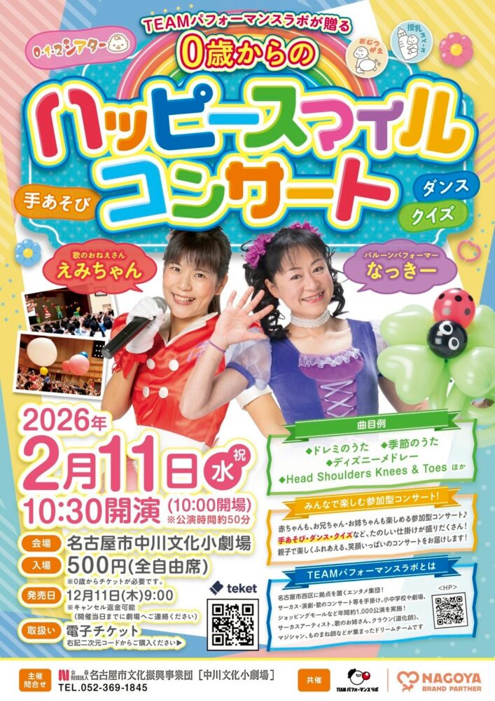 TEAMパフォーマンスラボが贈る、親子で楽しめる参加型コンサートが、2026年2月11日(水・祝)に中川文化小劇場で開催されます!