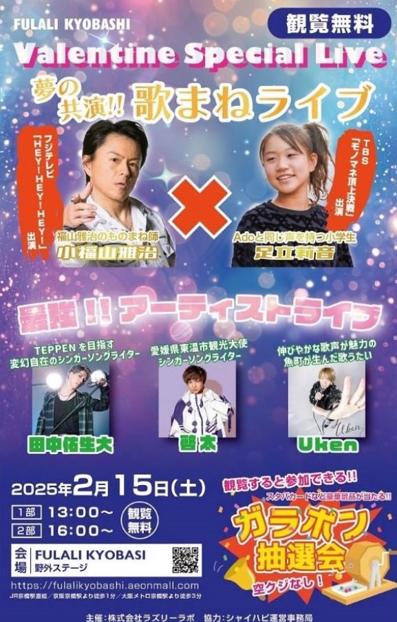 出演情報 / 2025.02.01 2/15 Valentine Special LIVE 出演告知 「Valentine Special LIVE」 正統派の若い方の中に入り混じって、ナナメ目線からのものまねを披露します! 小福山雅治の実積 メディア テレビ長崎 知りたがりin Da House! メディア 探偵!ナイトスクープ出演 メディア 東海テレビ ブラ迷相談部に出演 more GOODS PROFILE&GALLERY SNS